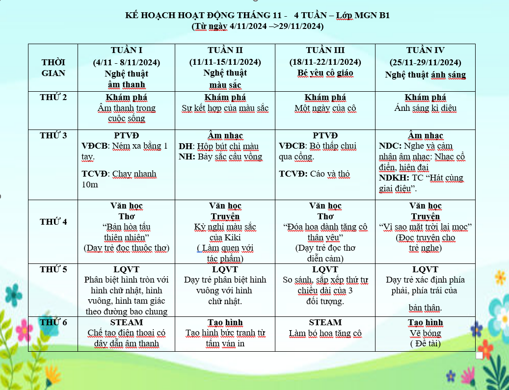 Kế hoạch giáo dục tháng 11 lớp MGB C3