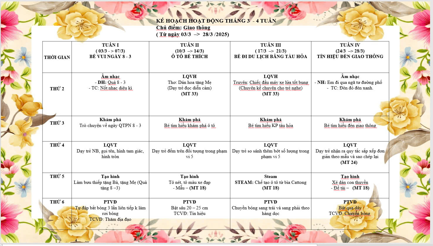 Kế hoạch giáo dục tháng 3 lớp Mẫu Giáo bé C1