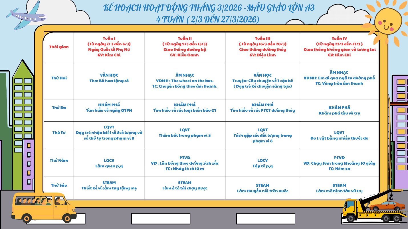 Kế hoạch giáo tháng 3 lớp Mẫu giáo lớn A2
