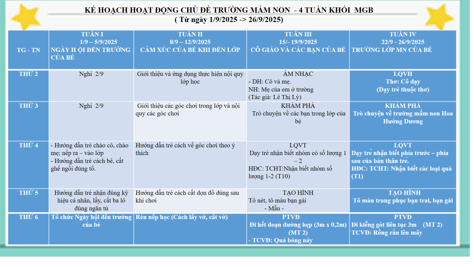 Kế hoạch giáo dục tháng 9 lớp MGB - C3