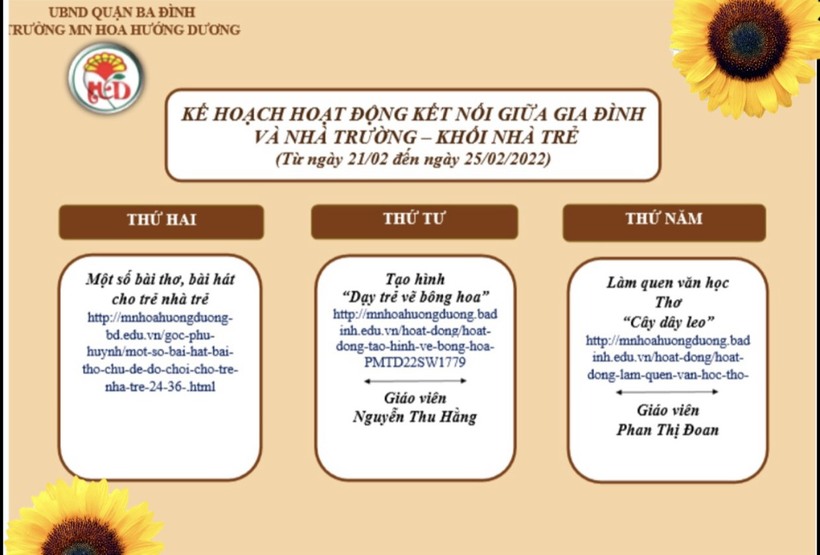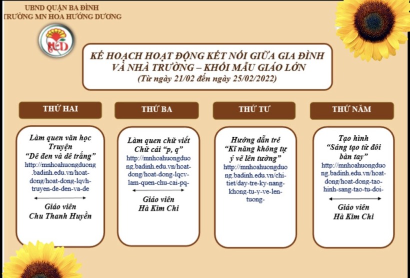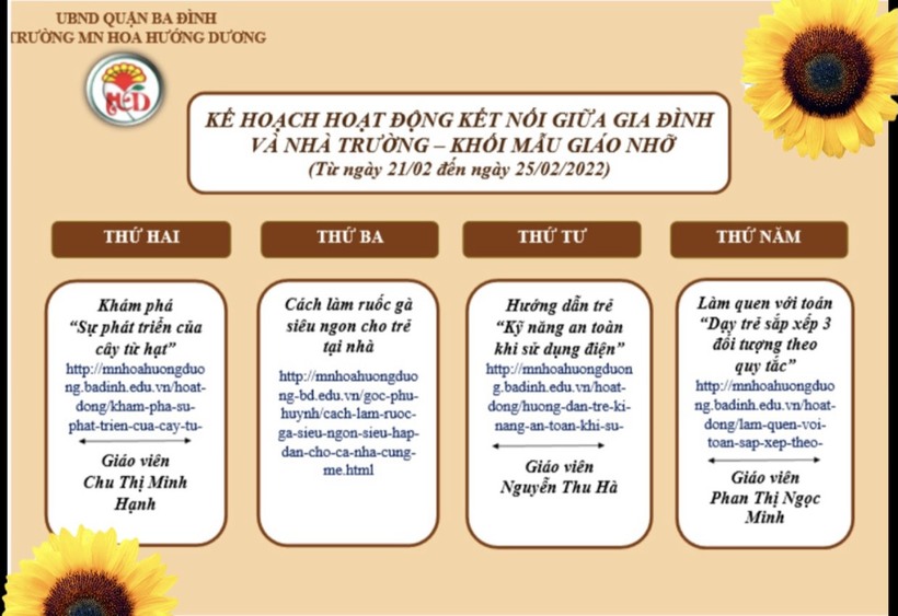 Thực hiện Hướng dẫn số 3058/SGDĐT-GDMN ngày 31/8/2021 của Sở Giáo dục và Đào tạo (GDĐT) về việc hướng dẫn thực hiện nhiệm vụ năm học 2021-2022 đối với giáo dục mầm non (GDMN); thực hiện hướng dẫn số: 3066 /SGDĐT – GDMN ngày 31 tháng 8 năm 2021 về việc hướng dẫn thực hiện quy chế chuyên môn giáo dục mầm non năm học 2020 – 2021; thưc hiện vào hướng dẫn số: 03/HD-PGD&ĐT ngày 04 tháng 9 năm 2021 về việc hướng dẫn thực hiện nhiệm vụ Giáo dục Mầm non Quận Ba Đình năm học 2021-2022; thực hiện vào hướng dẫn số: 04/HDQC - PGDĐT ngày 04 tháng 9 năm 2021 về việc hướng dẫn thực hiện quy chế chuyên môn Giáo dục mầm non quận Ba Đình năm học 2021-2022;