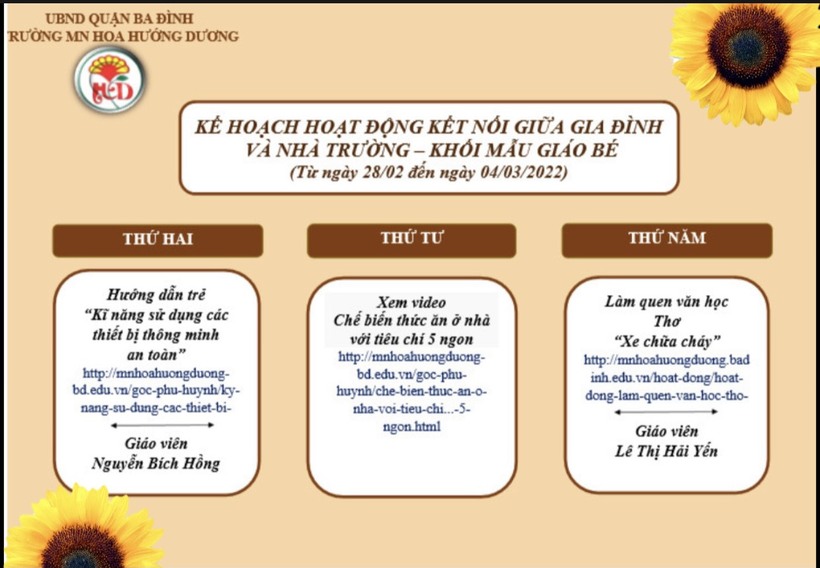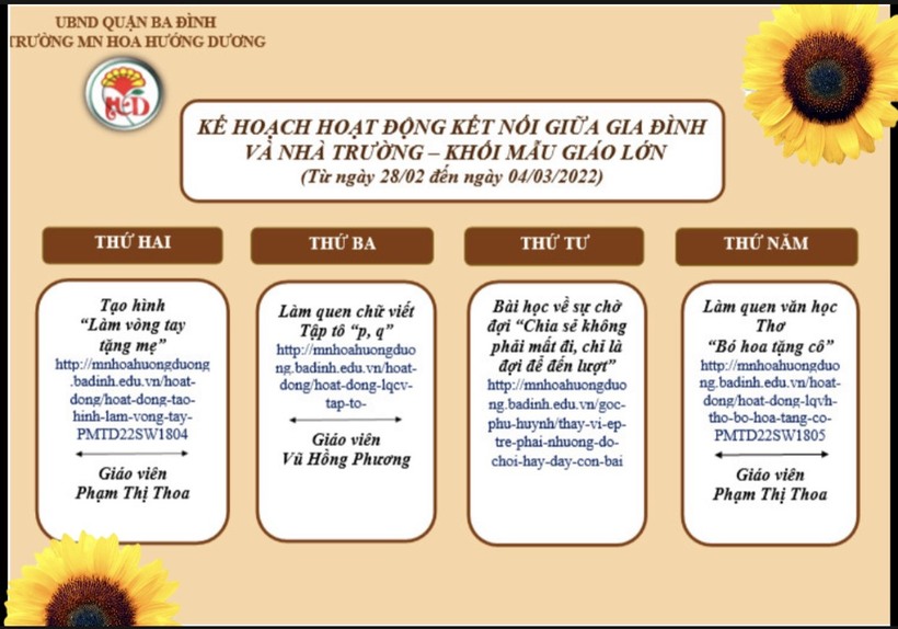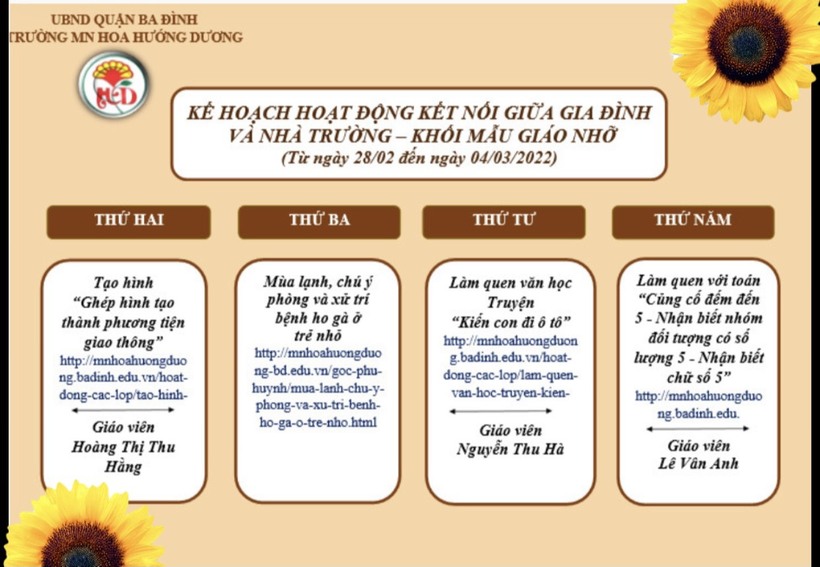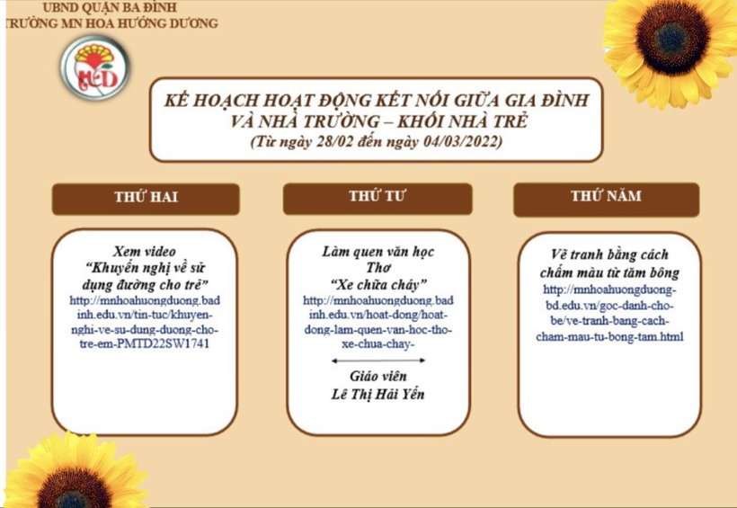 Kế hoạch kết nối với gia đình trẻ trong thời gian nghỉ dịch Covid - 19, từ ngày 28/02 đến ngày 04/03/2022