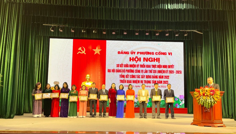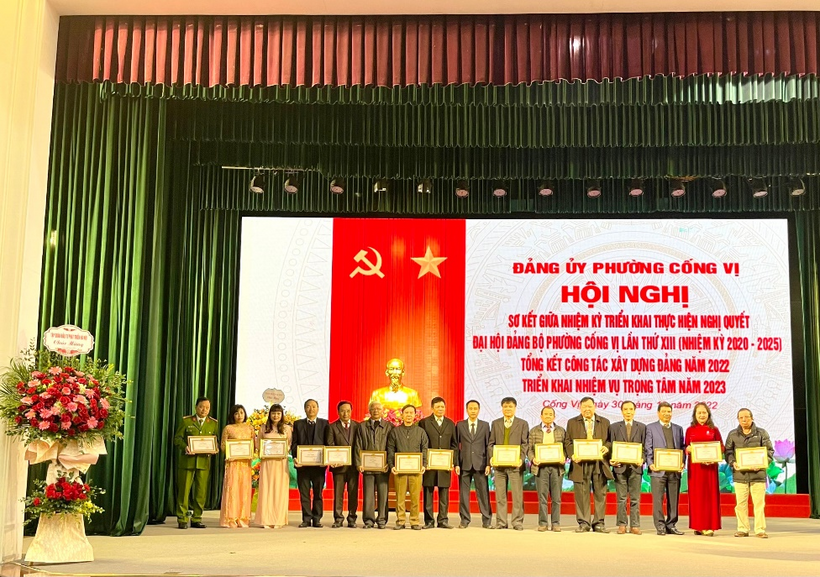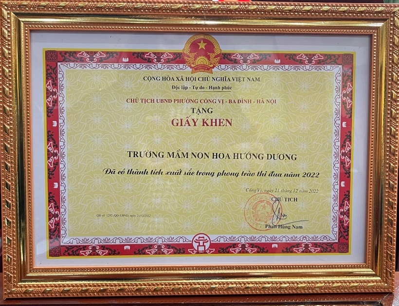Cũng trong ngày 30/12/2022, tại Hội nghị tổng kết phong trào thi đua và phong trào Toàn dân bảo vệ An ninh Tổ quốc năm 2022; phát động phong trào thi đua năm 2023, Chủ tịch UBND phường Cống Vị tặng giấy khen cho 01 cá nhân và Tập thể trường MN Hoa Hướng Dương đã có thành tích xuất sắc trong phong trào thi đua năm 2022.
