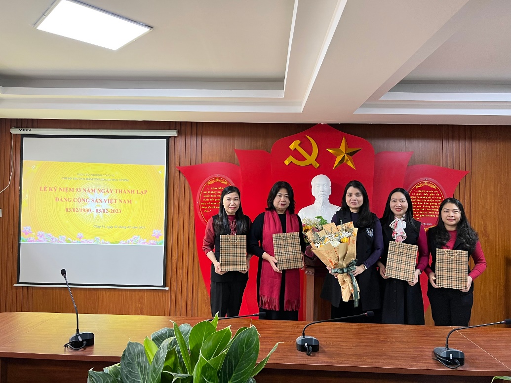 Trong buổi kỷ niệm, đồng chí Phùng Thị Bích Hiền - Bí thư chi bộ, Hiệu trưởng nhà trường đã cùng đảng viên chi bộ ôn lại những kỷ niệm hào hùng về ngày thành lập Đảng Cộng sản Việt Nam. Đồng chí đã nhắc lại những trang sử hào hùng của Đảng quang vinh, về lịch sử vẻ vang của dân tộc, về quê hương, đất nước anh hùng.