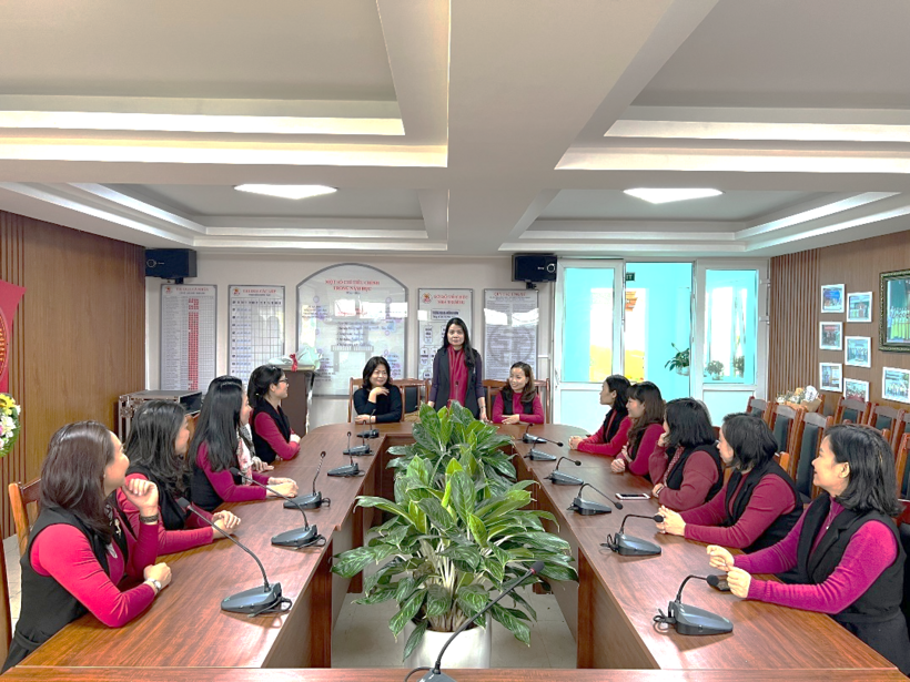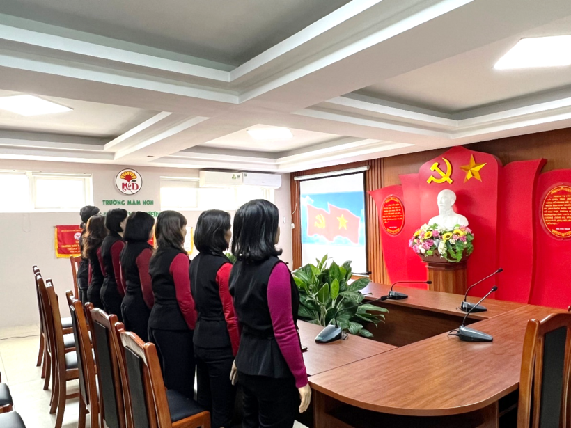 Đồng chí Phùng Thị Bích Hiền - Bí thư chi bộ, Hiệu trưởng nhà trường đã cùng đảng viên chi bộ ôn lại những kỷ niệm hào hùng về ngày thành lập Đảng Cộng sản Việt Nam