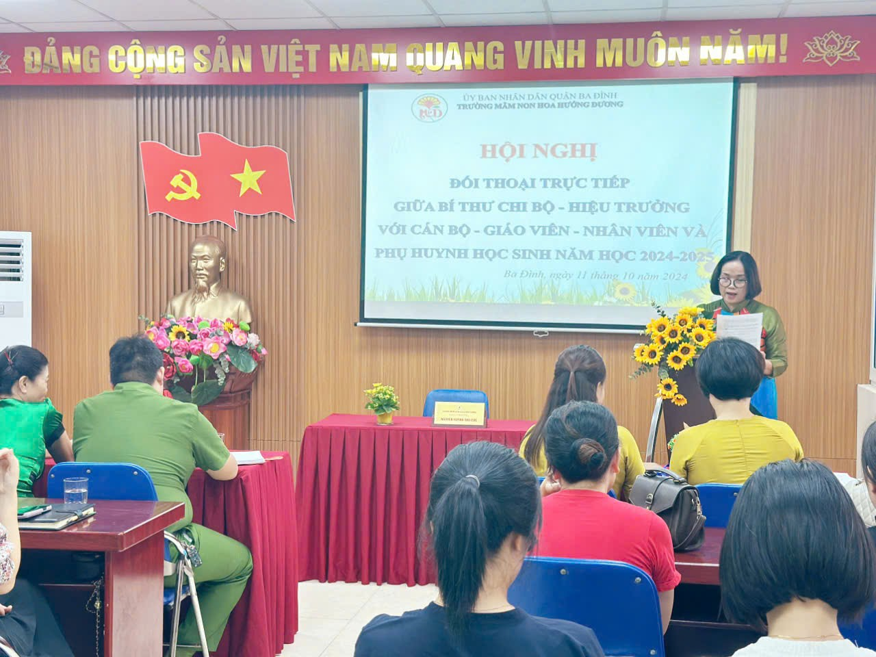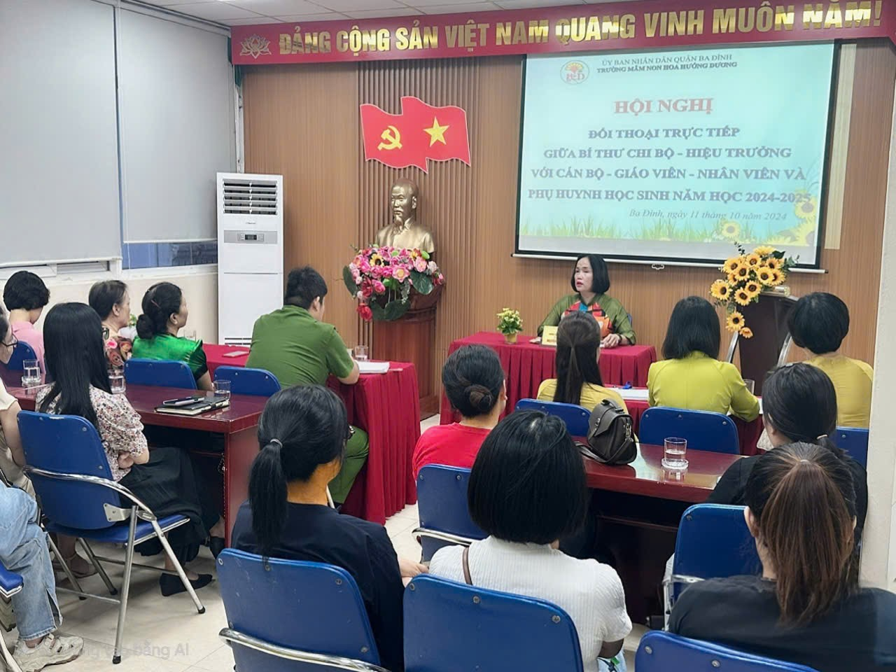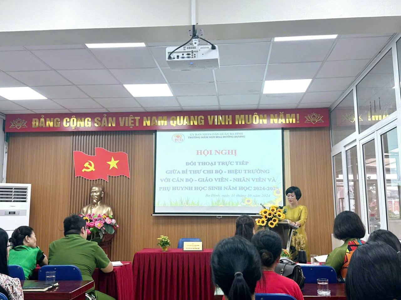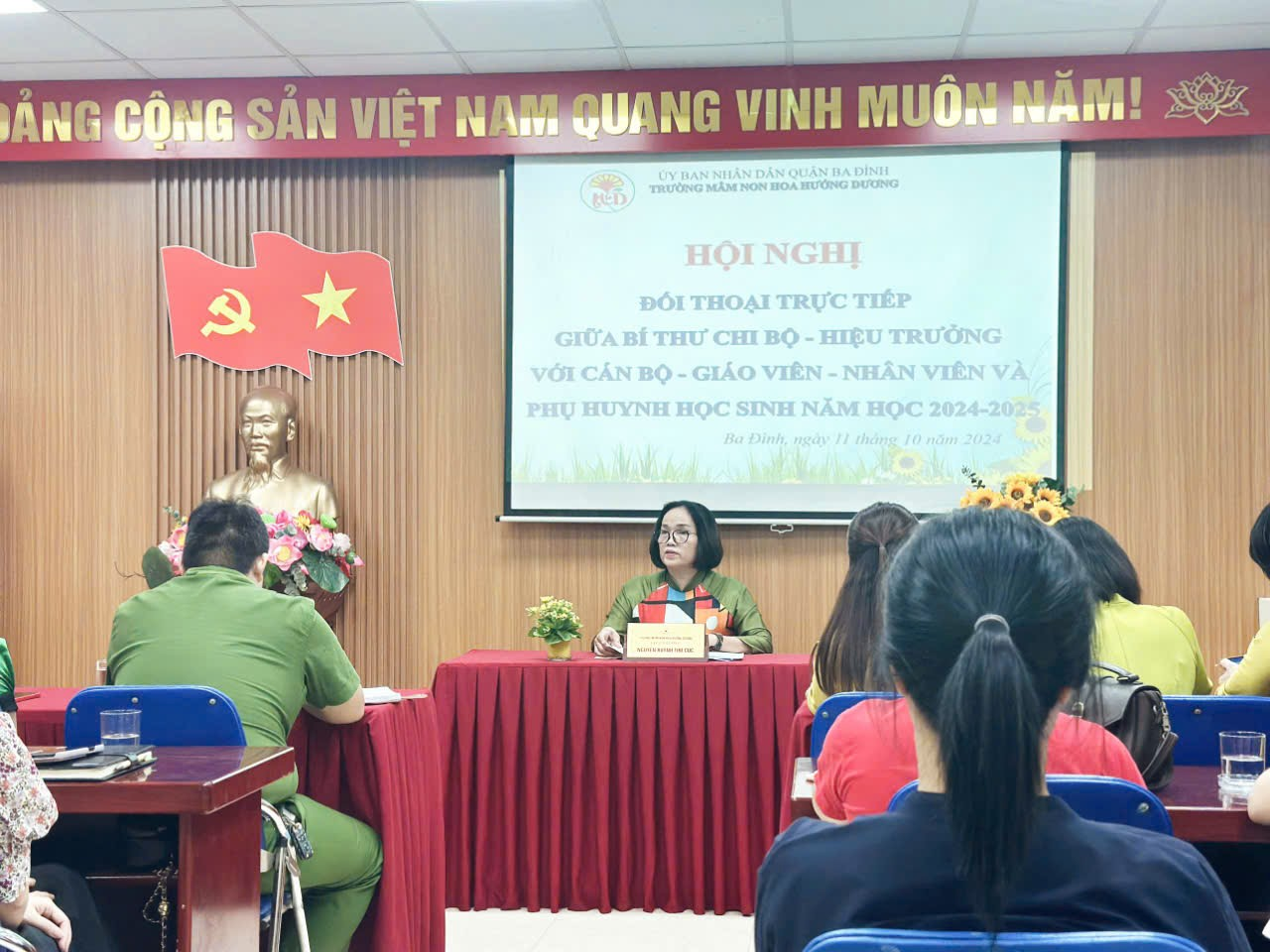 Chiều ngày 11/10/2024, trường Mầm non Hoa Hướng Dương tổ chức thành công Hội nghị đối thoại giữa Bí thư chi bộ - Hiệu trưởng và phụ huynh học sinh với chủ đề "Chuyển đổi số trong công tác chăm sóc giáo dục năm học 2024 - 2025".