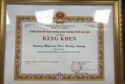 Trong buổi lễ tuyên dương, Trường mầm non Hoa Hướng Dương vinh dự được nhân bằng khen của chủ tịch UBND Thành Phố Hà Nội, Danh hiệu LĐTT cấp Quận