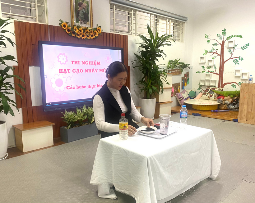 Cô giáo Đỗ Thị Hải Minh với hoạt động thí nghiệm: “Hạt gạo nhảy múa”
