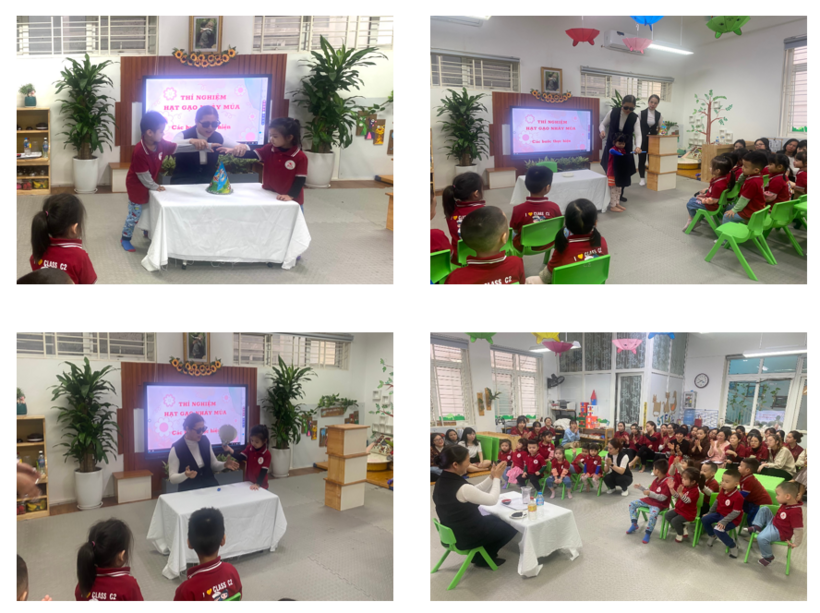 Trẻ say sưa làm thí nghiệm “Hạt gạo nhảy múa”