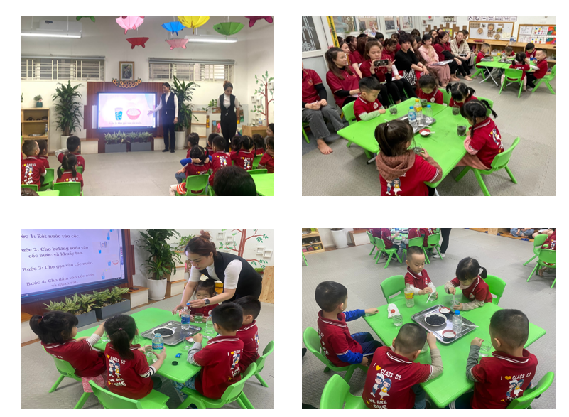 + Hoạt động thứ hai do cô giáo Đỗ Thị Hải Minh tổ chức ở lĩnh vực phát triển nhận thức với đề tài “Hạt gạo nhảy múa” thực hiện tại lớp Mẫu Giáo Bé C2.