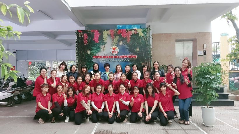 Trong buổi gặp mặt, đại diện trường mầm non Hoa Hướng Dương có mặt đầy đủ các đồng chí trong Ban giám hiệu, các đồng chí nhóm trưởng các lớp. Về phía đại diện trường Cao Đẳng Sư phạm TW có Thạc sỹ Lê Thị Lan Anh - Giảng viên khoa nghệ thuật cùng toàn thể 26 em sinh viên thực tập nghề nghiệp I - Đoàn số 24 trường Cao đẳng Sư phạm TW.