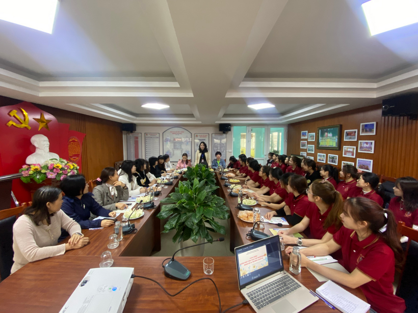 Đại diện Ban giám hiệu trường MN Hoa Hướng Dương, đồng chí Phùng Thị Bích Hiền - Bí thư chi bộ - Hiệu trưởng nhà trường đã giới thiệu đặc điểm tình hình nhà trường và các hoạt động chuyên môn đáp ứng với nhu cầu thực hành thực tập của các em sinh viên, đồng thời mong muốn các bạn sinh viên sẽ tích lũy kinh nghiệm, trau dồi chuyên môn và đạt kết quả cao trong đợt thực tập này.
