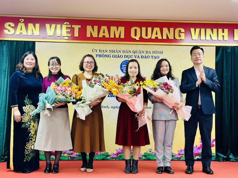 Nhân dịp này, quận Ba Đình trao thưởng cho 8 tập thể có thành tích xuất sắc trong hội thi giáo viên giỏi cấp quận năm học 2022 - 2023 và tặng hoa chúc mừng 4 tân cán bộ quản lý là Phó Hiệu trưởng các trường mới được bổ nhiệm.