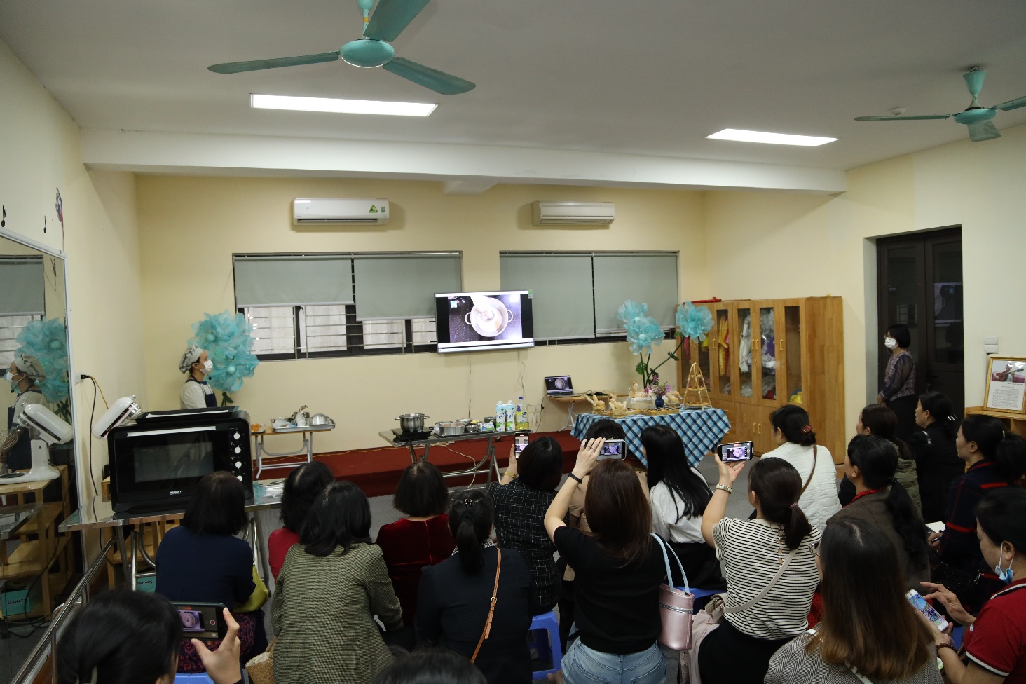 Cũng tại buổi tập huấn cán bộ, giáo viên, nhân viên các nhà trường được thực hành, chế biến một số loại nước sốt; làm một số loại bánh cho bữa chính chiều của nhà trẻ và bữa phụ cho trẻ mẫu giáo. Các món ăn được chuẩn bị không chỉ đảm bảo tiêu chuẩn dinh dưỡng mà còn đa dạng về hình thức, giúp trẻ thêm yêu thích bữa ăn của mình.
