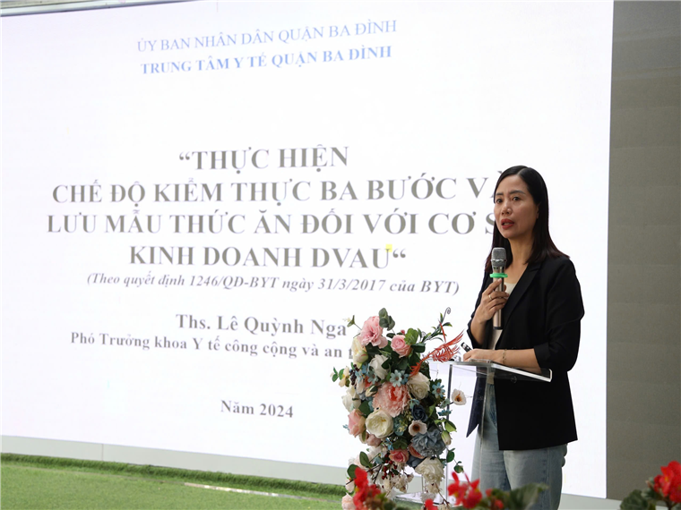 Thạc sĩ Lê Quỳnh Nga - Giảng viên Trung tâm Y tế quận Ba Đình tập huấn về An toàn vệ sinh thực phẩm