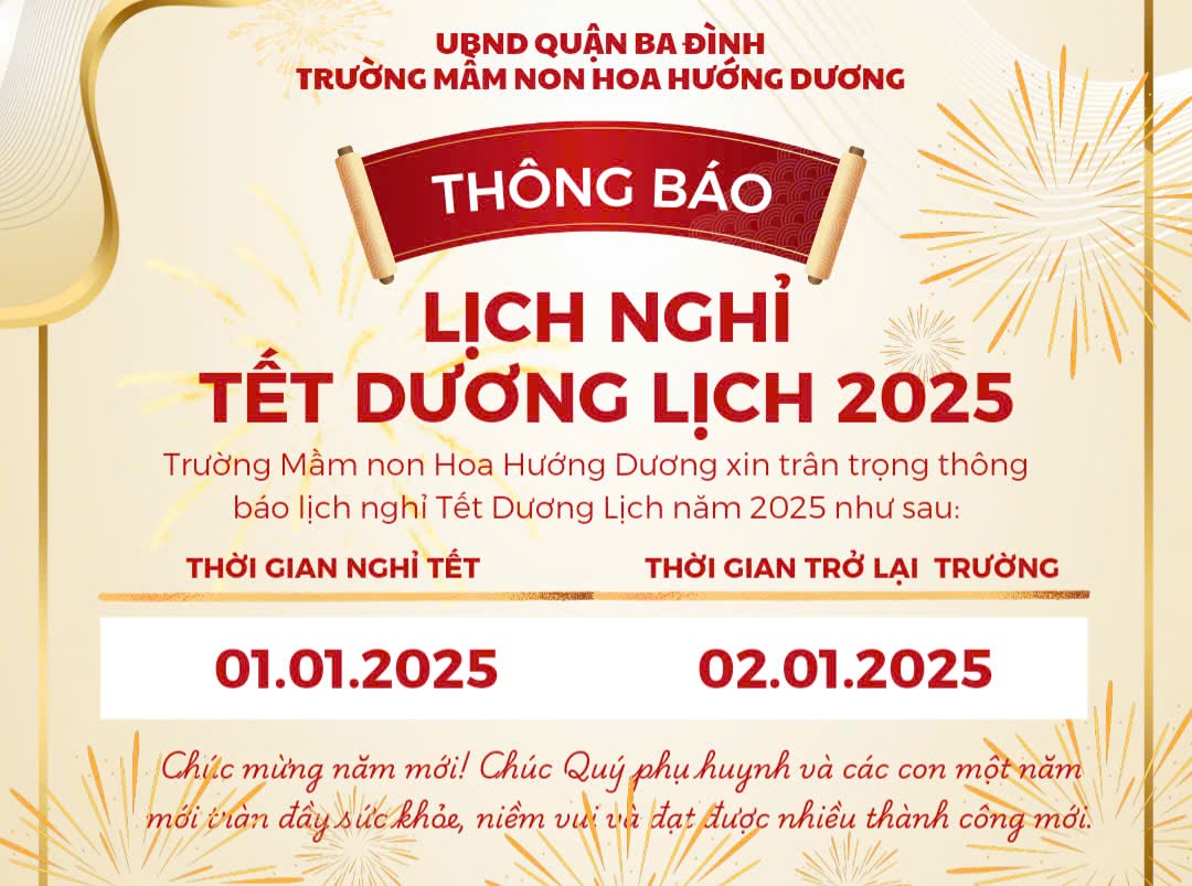 Trường Mầm non Hoa Hướng Dương thông báo lịch nghỉ Tết Dương lịch năm 2025