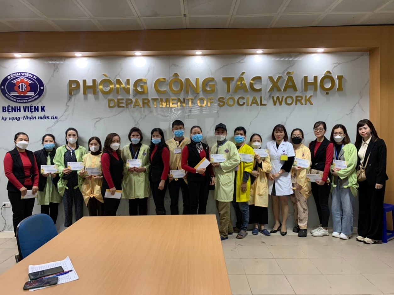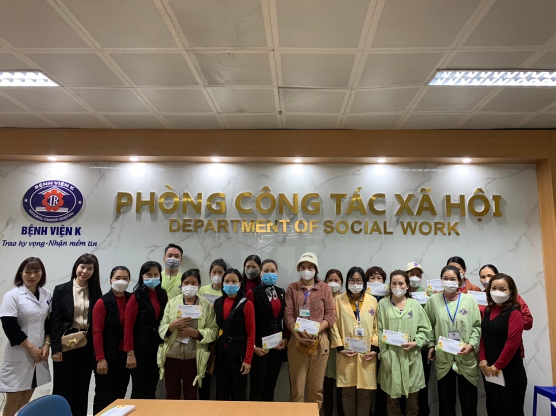 Để bù đắp, sẻ chia tình yêu thương đến những bệnh nhân, cán bộ - giáo viên - công nhân viên cùng cha mẹ học sinh trường mầm non Hoa Hướng Dương đã gửi tặng những món quà nhân ngày đầu xuân mới, để một phần nào hỗ trợ thêm cho kinh phí điều trị và đây cũng là chút tình cảm của đoàn gửi gắm, động viên, an ủi tinh thần, giúp các bệnh nhân và gia đình thêm lạc quan hơn vào cuộc sống.