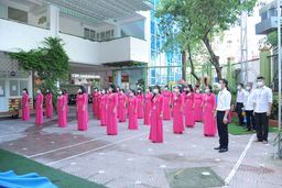 Do tình hình dịch bệnh Covid-19, Hà Nội quyết định tổ chức lễ khai giảng theo hình thức trực tiếp. Thực hiện đúng hướng dẫn của Sở GD&ĐT Hà Nội, Phòng GD&ĐT Quận Ba Đình về việc hướng dẫn các trường tổ chức lễ khai giảng diễn ra trang nghiêm, ngắn gọn tuân thủ nghiêm các biện pháp phòng chống dịch.