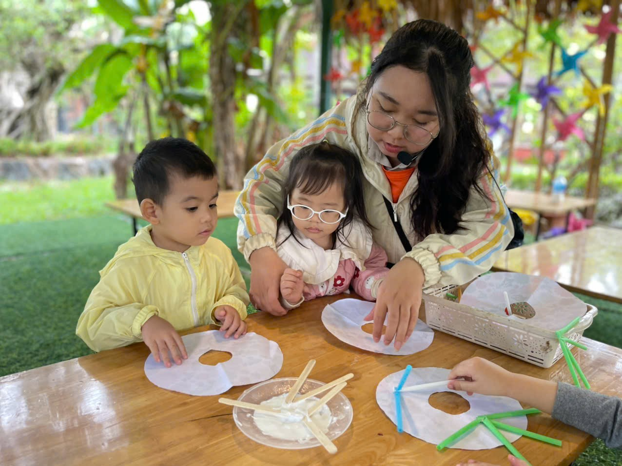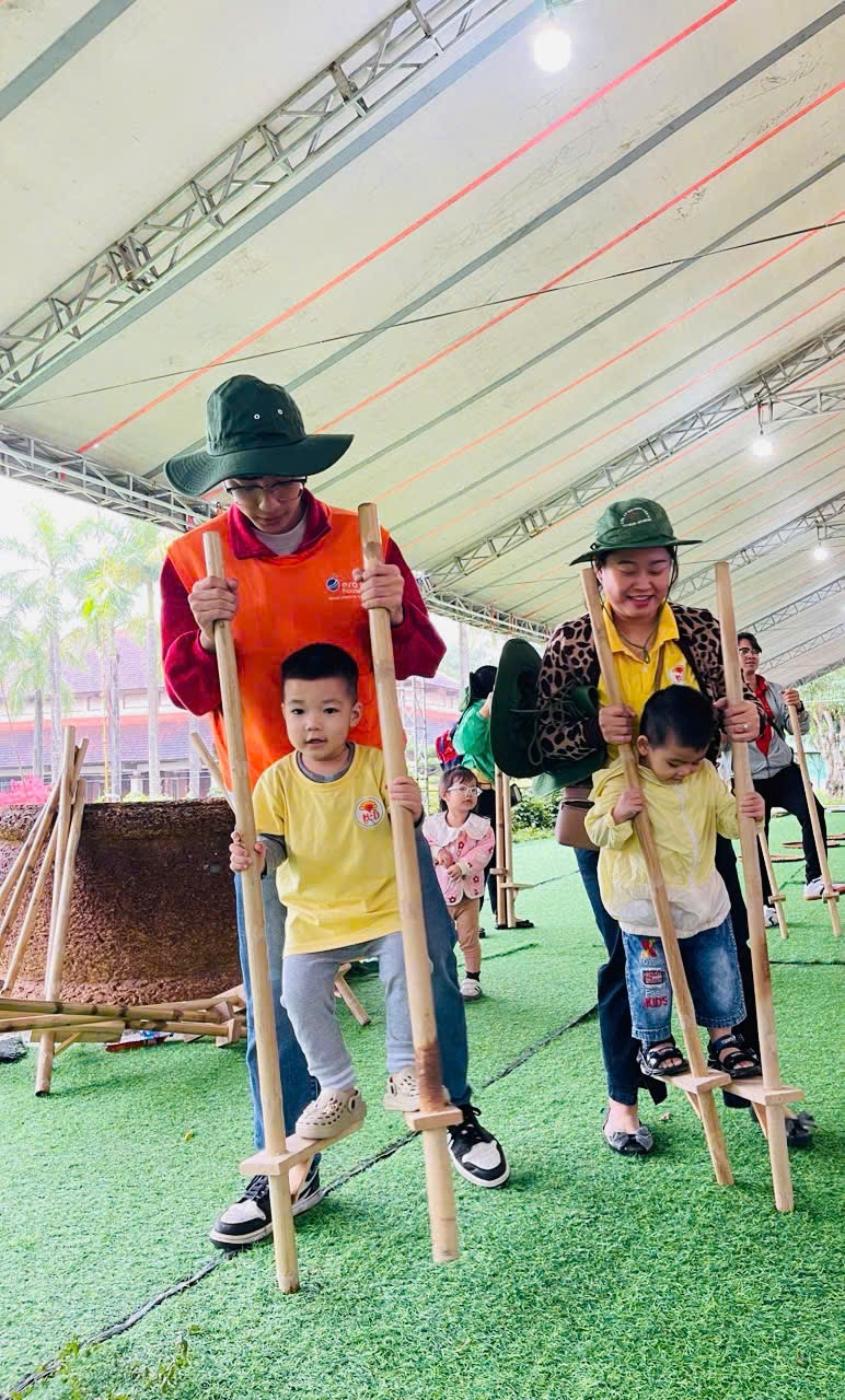 Thử thách Vận động Dân gian: Với tinh thần vui chơi là chính, các bé được trải nghiệm những trò chơi đòi hỏi sự khéo léo và thăng bằng như Đi cà kheo mini. Đây là những bài tập tuyệt vời giúp phát triển kỹ năng vận động thô và sự tự tin.