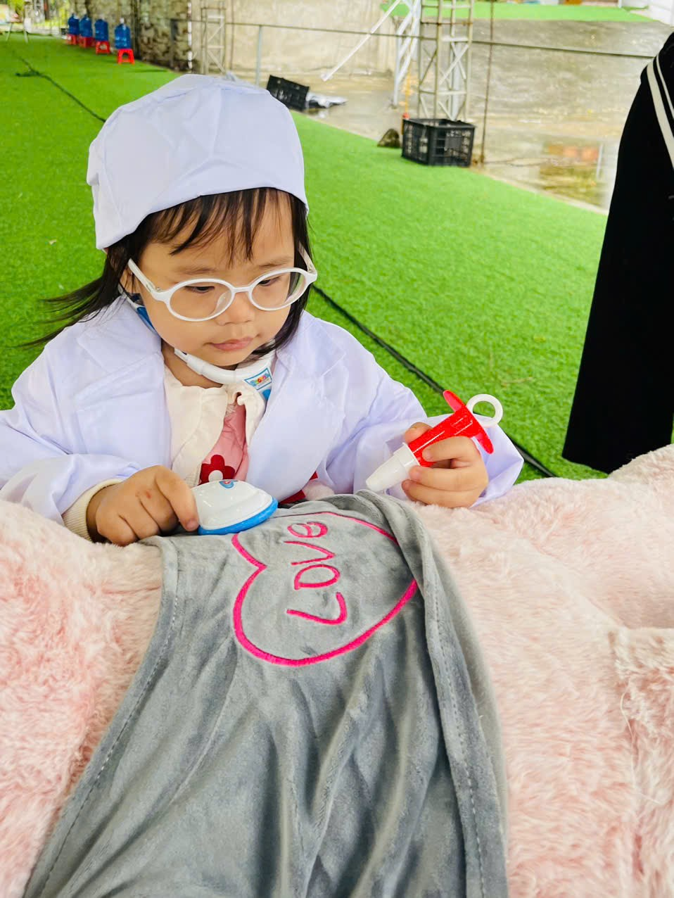 Hoạt động nhập vai luôn là cách học tập hiệu quả nhất đối với trẻ mầm non, đặc biệt là lứa tuổi nhà trẻ:Tại khu vực nhập vai, các bé được khoác lên mình chiếc áo blouse trắng, làm quen với những dụng cụ y tế đơn giản (ống nghe, nhiệt kế đồ chơi). Hoạt động này giúp bé vượt qua nỗi sợ hãi khi gặp bác sĩ, đồng thời nuôi dưỡng lòng nhân ái và sự quan tâm đến sức khỏe của mọi người.