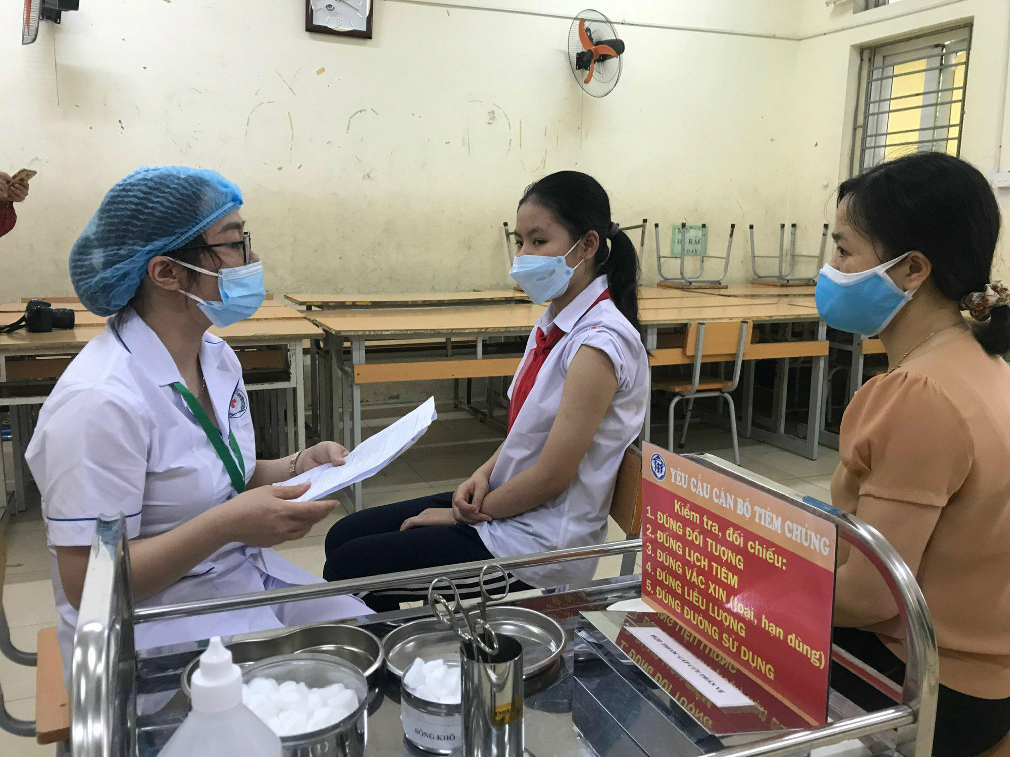 Trong quá trình tiêm, cán bộ y tế đã tư vấn cẩn thận cho phụ huynh và các em học sinh loại vaccine sử dụng trong chiến dịch này, liều lượng và theo dõi sức khỏe, chế độ dinh dưỡng cho trẻ. Đặc biệt nếu có phản ứng bất thường về sức khỏe cần liên hệ với cán bộ y tế hoặc đến cơ sở khám chữa bệnh gần nhất để được xử lý kịp thời...