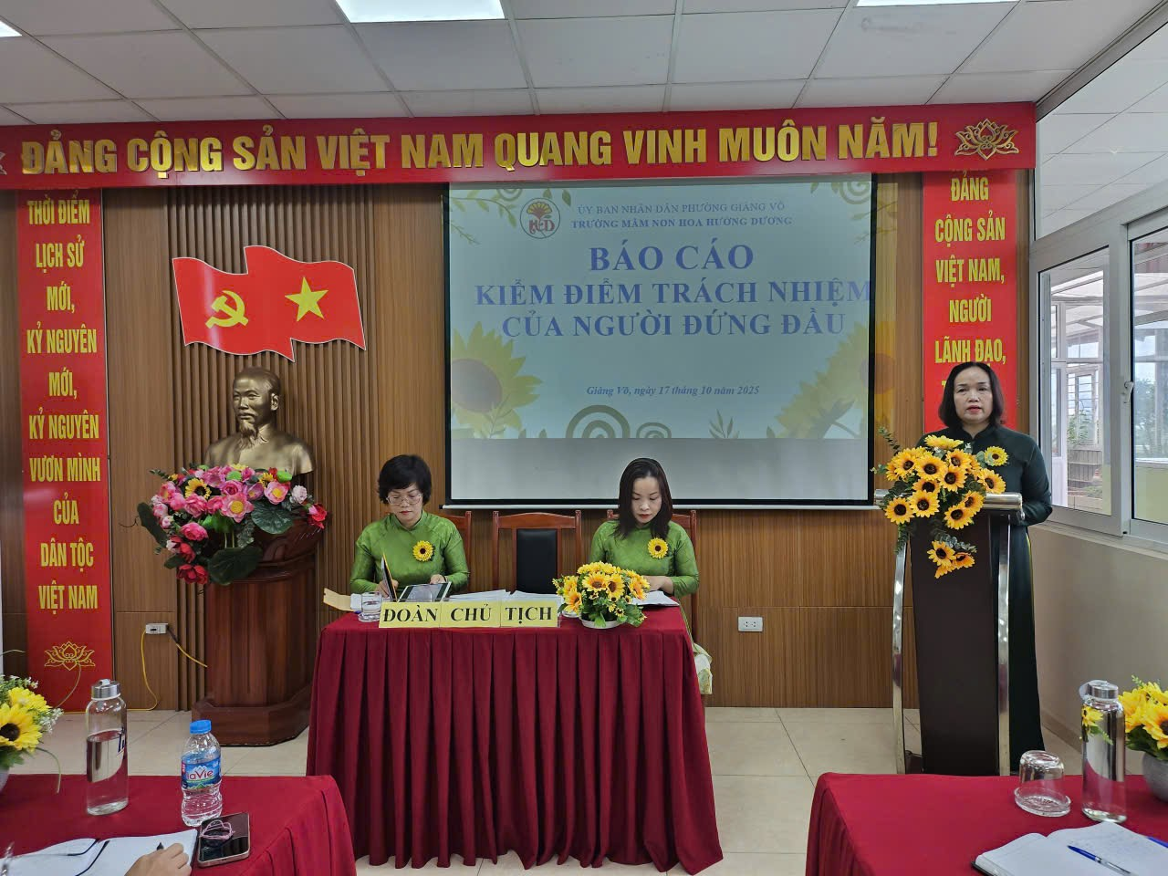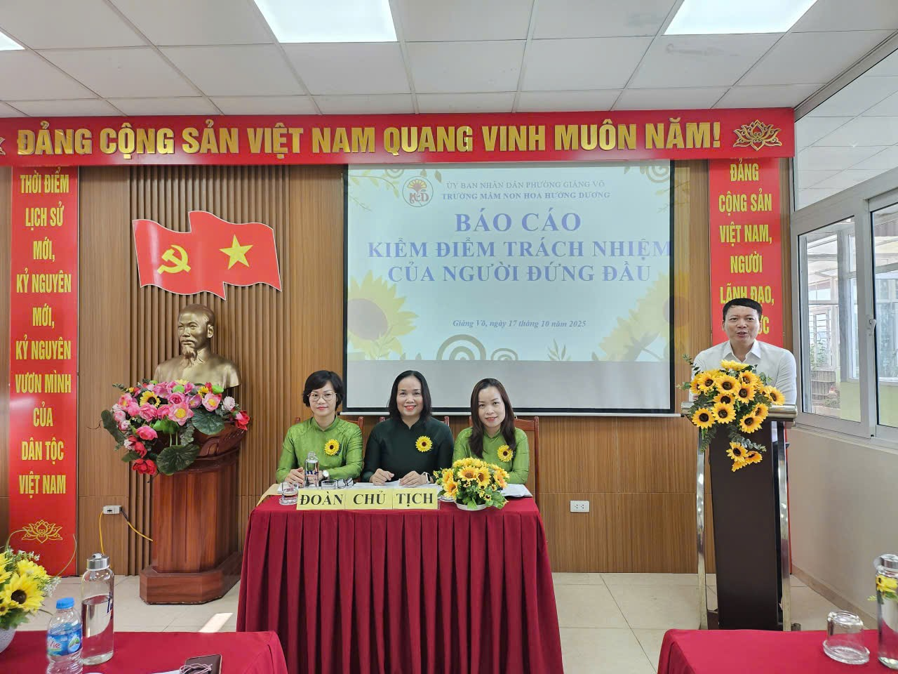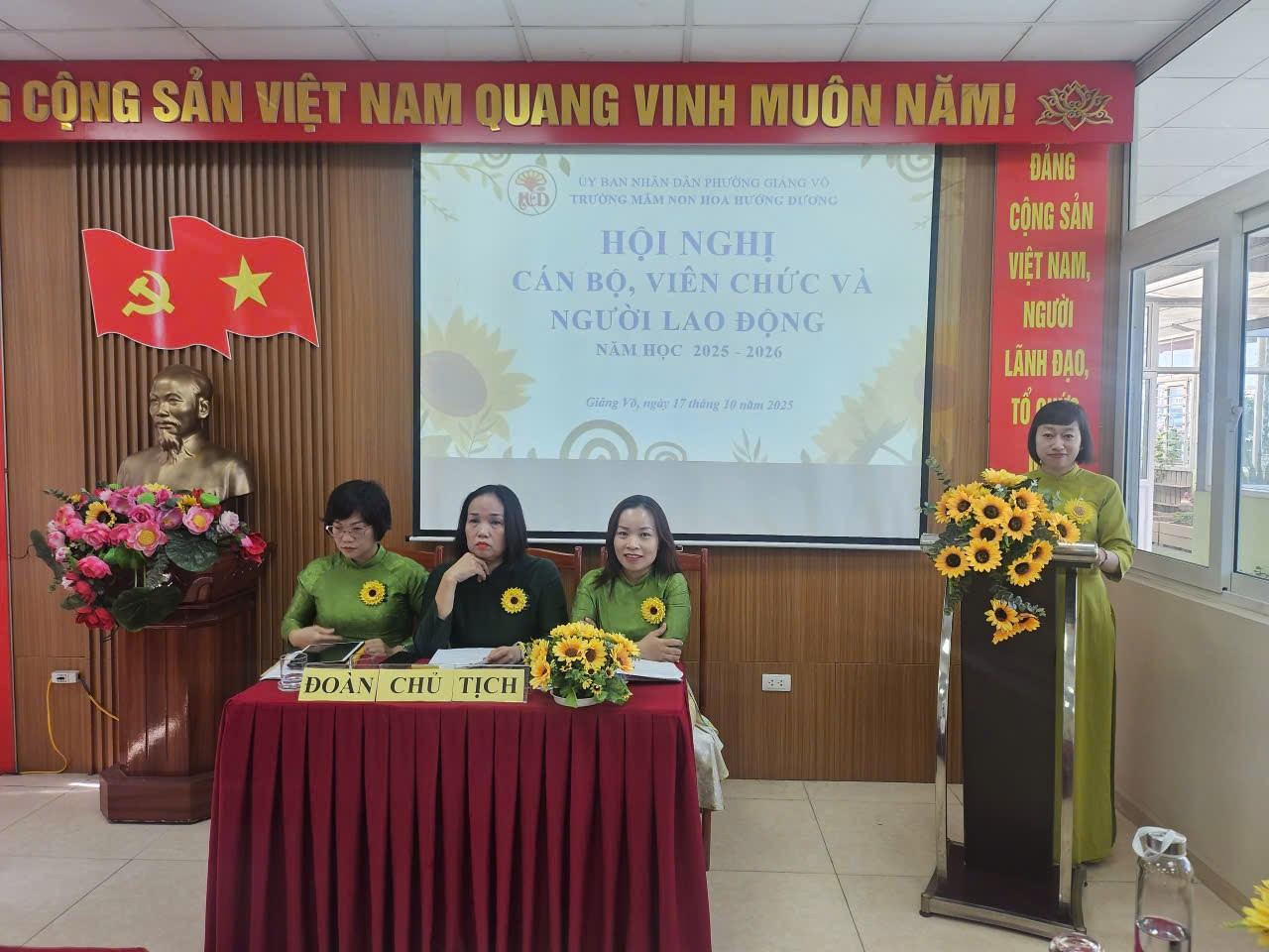 Phát biểu tại Hội nghị, đồng chí Nguyễn Như Tùng- Phó trưởng phòng Văn hóa - Xã hội phường Giảng Võ ghi nhận và đánh giá cao những nỗ lực, thành tích mà tập thể trường Mầm non Hoa Hướng Dương đã đạt được trong năm học qua; đồng thời mong muốn nhà trường tiếp tục phát huy tinh thần đoàn kết, sáng tạo, nỗ lực hơn nữa để hoàn thành xuất sắc nhiệm vụ năm học 2025–2026.