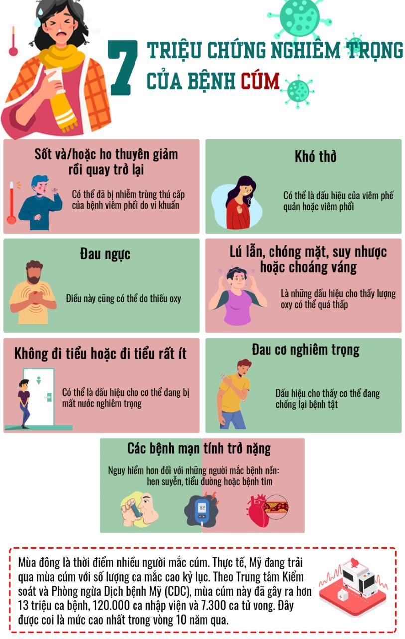 Bộ Y tế khuyến cáo, những người có bệnh lý nền cần hết sức lưu ý, khi có biểu hiện sốt, đau rát họng, hắt hơi, sổ mũi nên được đi khám sàng lọc cúm và đánh giá và cân nhắc cho dùng thuốc kháng virus cúm sớm để ngăn ngừa nguy cơ nhiễm cúm nặng. Nếu để đến lúc nặng rồi mới đi viện khám, điều trị tốn kém và khó khăn.
