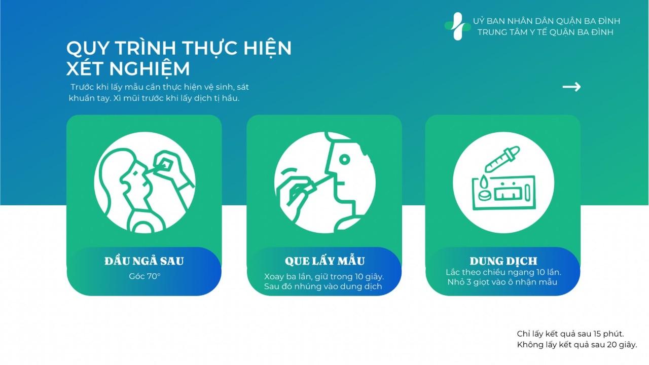 - Test nhanh sử dụng xét nghiệm kháng nguyên Sars-Covi-2 phải thuộc danh mục test đã được Bộ Y tế cấp phép.