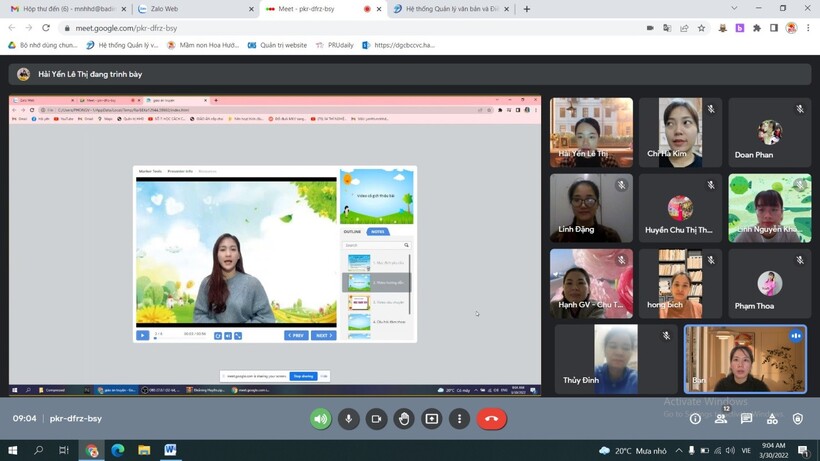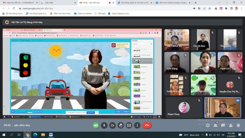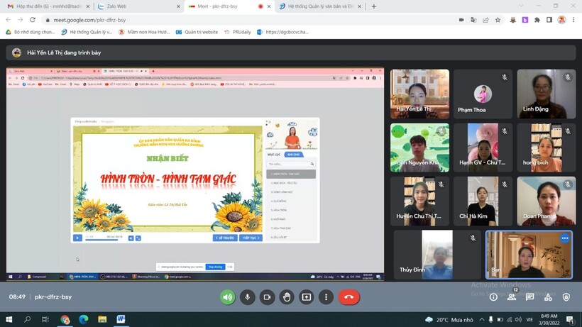Nhằm đẩy mạnh phong trào ứng dụng CNTT trong đổi mới phương pháp dạy học một cách sáng tạo, hiện đại, tăng cường tính tính cực và tự học. Năm học 2021-2022 đứng trước tình hình dịch bệnh diễn biến phức tạp, trường Mầm Non Hoa Hướng Dương chủ động xây dựng bồi dương bài giảng Elearing cho đội ngũ giáo viên nhà trường, trong thời gian 1 tháng nhà trường bồi dưỡng 2 khóa học với 10 giáo viên ở các khối lớp