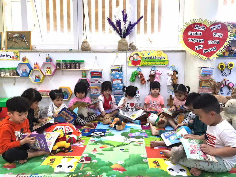 Môi trường học lý tưởng đầu tư về cơ sở vật chất được trang bị đầy đủ, phòng học rộng rãi thoáng mát gắn liền với thiên nhiên, được thiết kế đầy đủ các góc chơi.