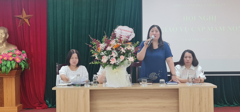 Tại Hội nghị, Bà Trần Thị Vinh phó trưởng phòng giáo dục đã triển khai nhiệm vụ năm học và Hướng dẫn thực hiện qui chế chuyên môn năm học 2022 – 2023 của cấp học mầm non quận Ba Đình.