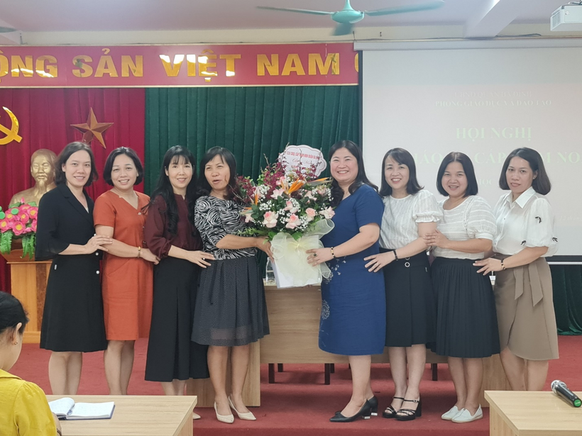 Tham dự hội nghị có đ/c Phùng Thị Bích Hiền - Hiệu trưởng nhà trường, đ/c Trương Thị Thúy Anh - Phó Hiệu trưởng nhà trường cùng các Hiệu trưởng, Phó Hiệu trưởng các trường Mầm non công lập, các chủ trường, chủ lớp mầm non tư thục thuộc quận Ba Đình. Dự và chủ trì Hội nghị có bà Trần Thị Vinh – Phó trưởng phòng GDĐT quận cùng các đ/c là Chuyên viên Tổ mầm non Phòng GDĐT quận.