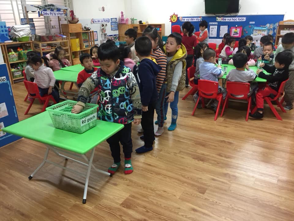 100% các cháu đăng ký tham gia Chương trình sữa học đường được uống sữa tại trường. Từ khâu nhận sữa, kiểm tra, bảo quản, chia sữa cho các lớp đến lúc cho trẻ uống sữa đều được thực hiện nghiêm túc và đảm bảo vệ sinh an toàn thực phẩm. Bạn nào cũng háo hức, thích thú khi được nhận sữa và cùng nhau uống sữa một cách ngon lành, vì thời tiết lạnh nên các cô đã ngâm sữa cho ấm để đẩm bảo sức khỏe cho trẻ.Khi uống xong, các bạn còn biết gấp gọn vỏ hộp sữa để đảm bảo giữ gìn vệ sinh môi trường theo đúng sự hướng dẫn của các cô giáo trong lớp.