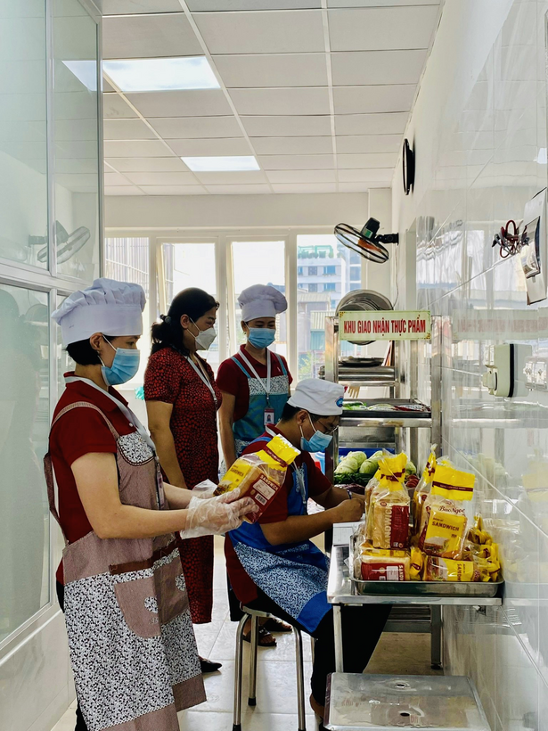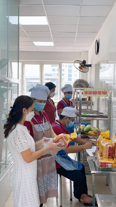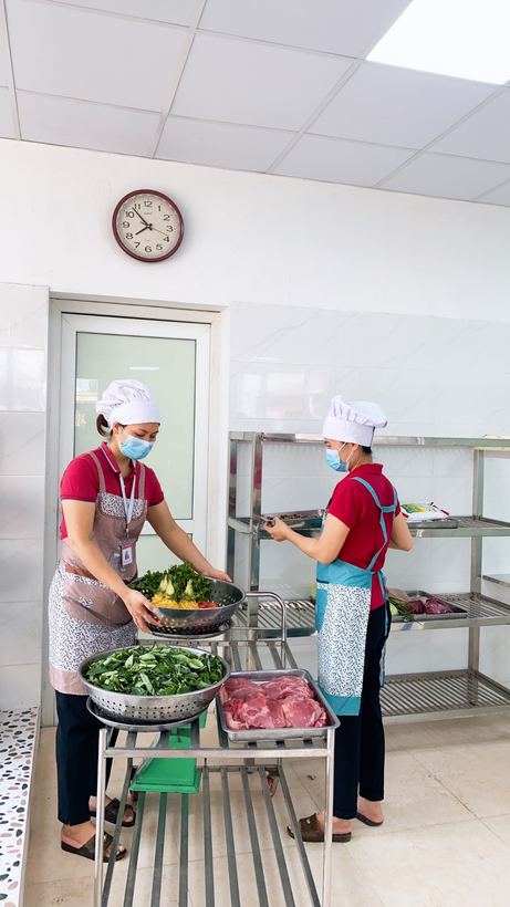 Bên cạnh đó, nhà trường chủ động đẩy mạnh công tác tự giám sát và phối hợp với cha mẹ học sinh trong khâu giao nhận thực phẩm đầu giờ để thực hiện tốt công tác an toàn thực phẩm trong nhà trường. Nhà trường thực hiện nghiêm túc việc công khai thực đơn, tài chính hằng ngày, chú trọng cải tiến các bữa ăn và phối hợp giữa các món ăn trong ngày cho hợp lý nhưng vẫn đảm bảo dinh dưỡng theo từng độ tuổi trẻ.