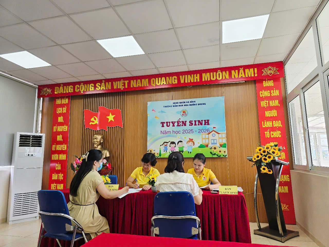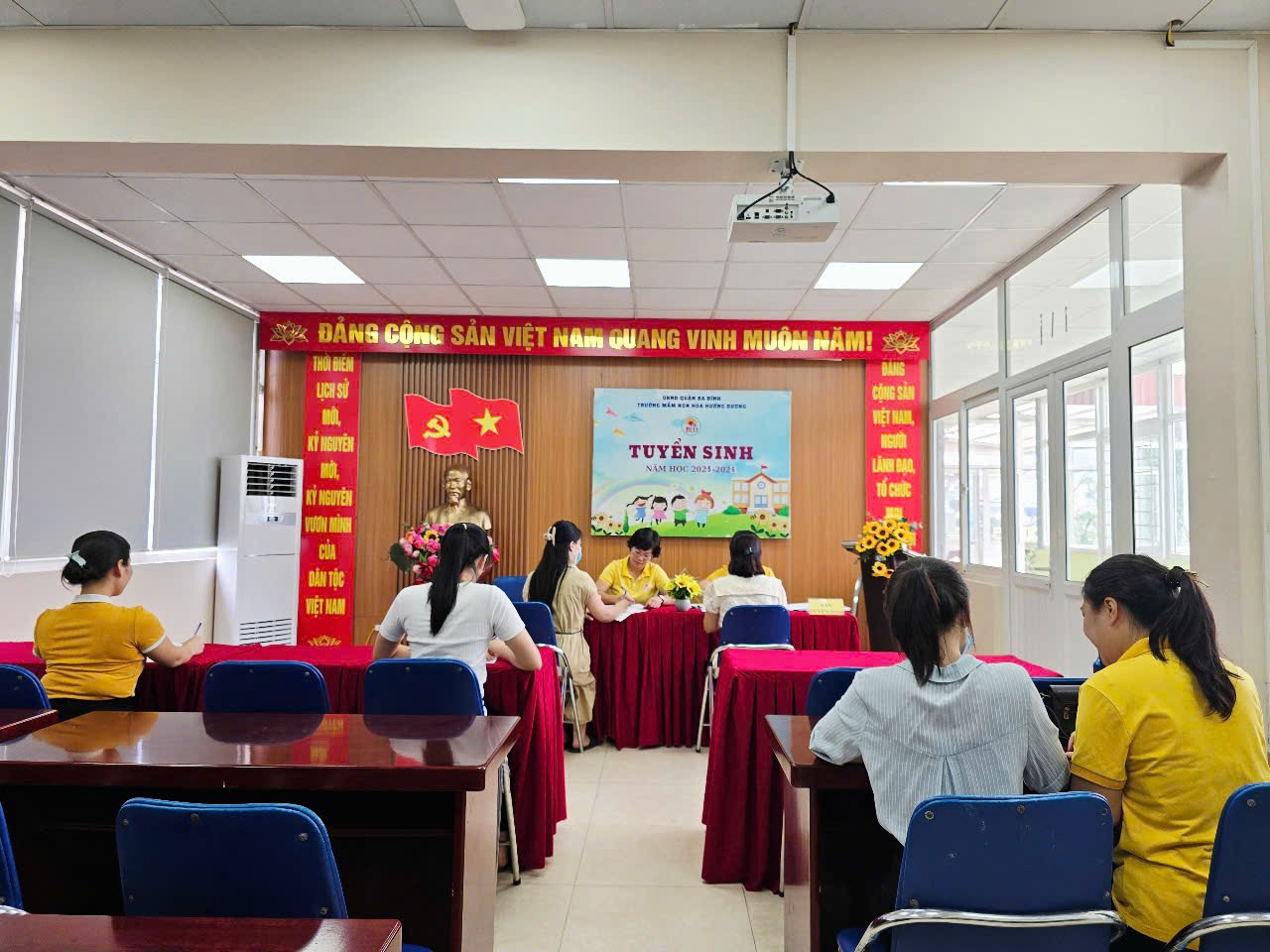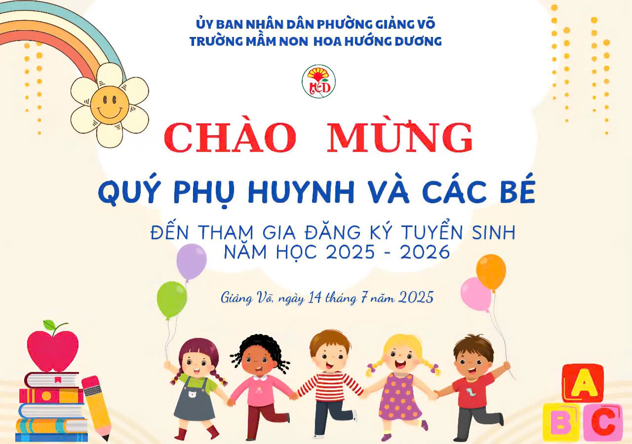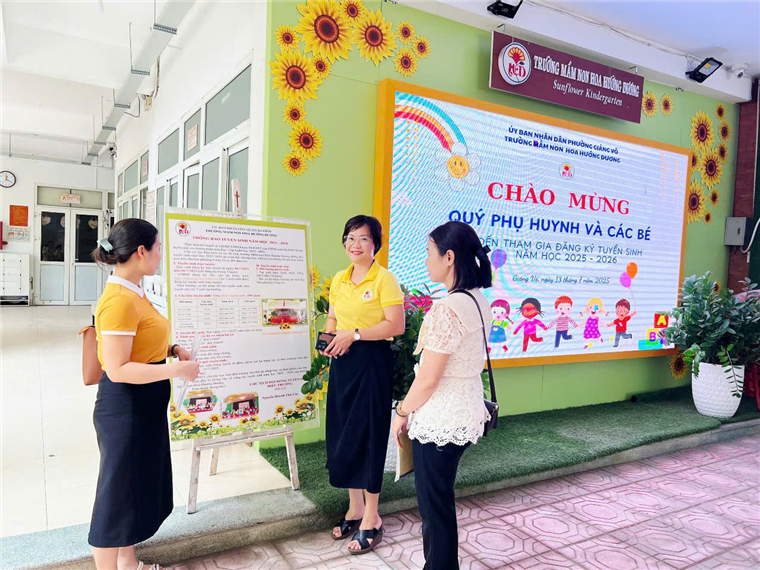 Năm học 2025-2026 đang đến gần, trường Mầm non Hoa Hướng Dương đã chủ động triển khai công tác tuyển sinh với sự chuẩn bị chu đáo như: tích cực tuyên truyền, công khai các văn bản hướng dẫn về công tác tuyển sinh trên Website, trang Fanpage bảng tin của nhà trường, zalo các nhóm, lớp nhằm thông tin trực tiếp đến phụ huynh học sinh cũng như nhân dân trên địa bàn phường Giảng Võ về thời gian, độ tuổi cũng như quy trình tuyển sinh.