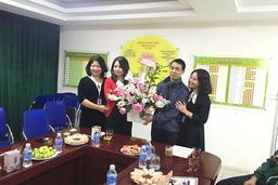Đại diện Tổ bảo vệ có lẵng hoa chúc mừng các chị em trong ngày lễ 8/3