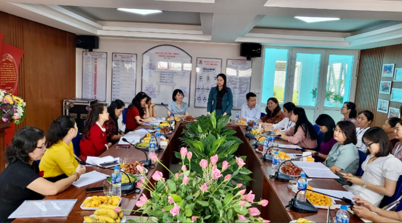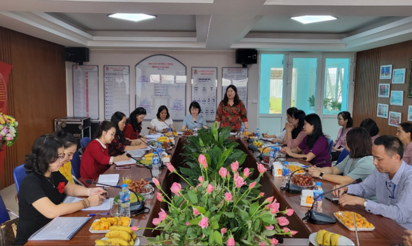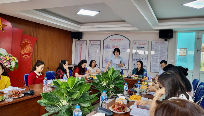 Đồng chí Trần Thị Vinh – Phó Trưởng phòng GD&ĐT quận Ba Đình phát biểu tại buổi làm việc